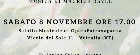 Vi aspettiamo Sabato 8 novembre alle ore 17:00 al salotto musicale di OperaExtravaganza per un pomeriggio dedicato alla raffinata musica di Maurice Ravel: uno dei più originali e raffinati autori dell’inizio del Novecento. Un vero e proprio pittore del pentagramma: la sua tavolozza sonora ha contribuito a delineare l’identità della musica francese.